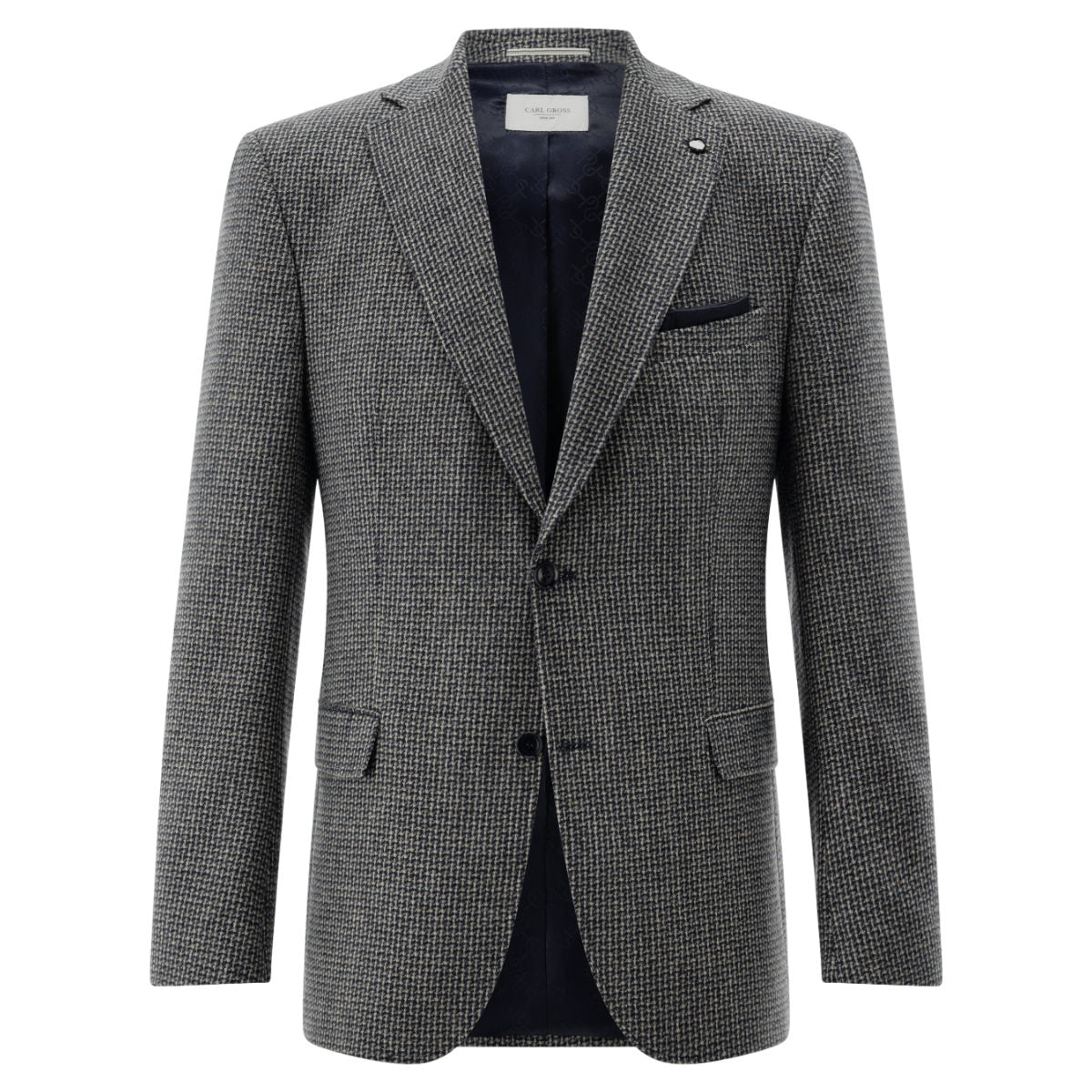 Blazer fra Carl Gross i modern fit, fremstillet af en blanding af 65% polyester, 25% uld og 10% andre fibre, der kombinerer holdbarhed med naturlig komfort. Blazeren har et tidløst design, der passer til både formelle og afslappede looks, og materialets sammensætning sikrer en blød følelse og let vedligeholdelse. Perfekt til at opgradere garderoben med et klassisk og alsidigt stykke tøj.