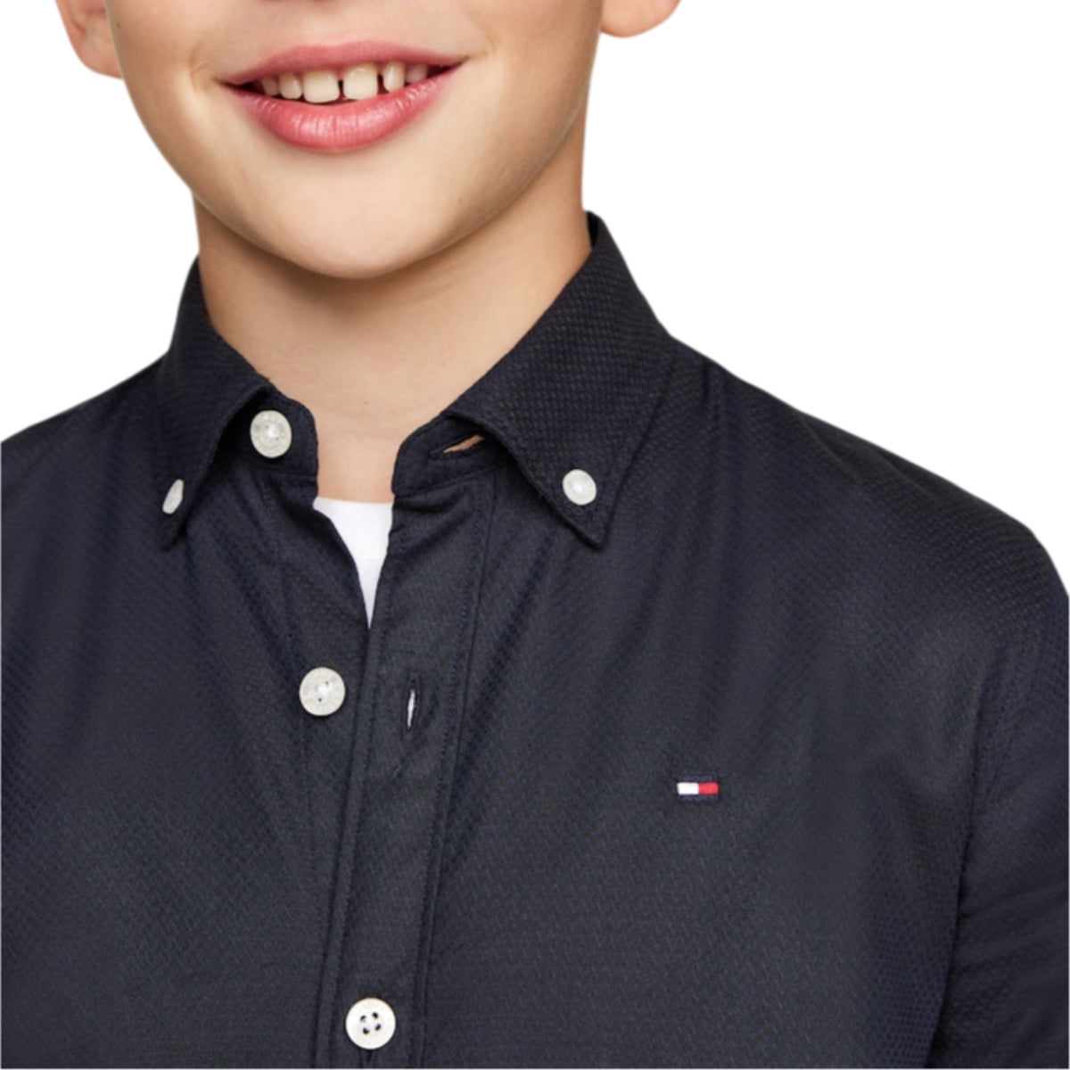 - Detaljer: Dobby-struktur, knaplukning og lille broderet Tommy Hilfiger-logo.