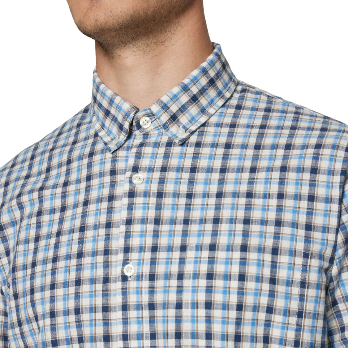 Fremstillet i 100% bomuld, som sikrer åndbar komfort og en behagelig følelse hele dagen. Skjorten er vævet i en slub check-struktur, der giver en flot, let tekstur og et levende, moderne udtryk.