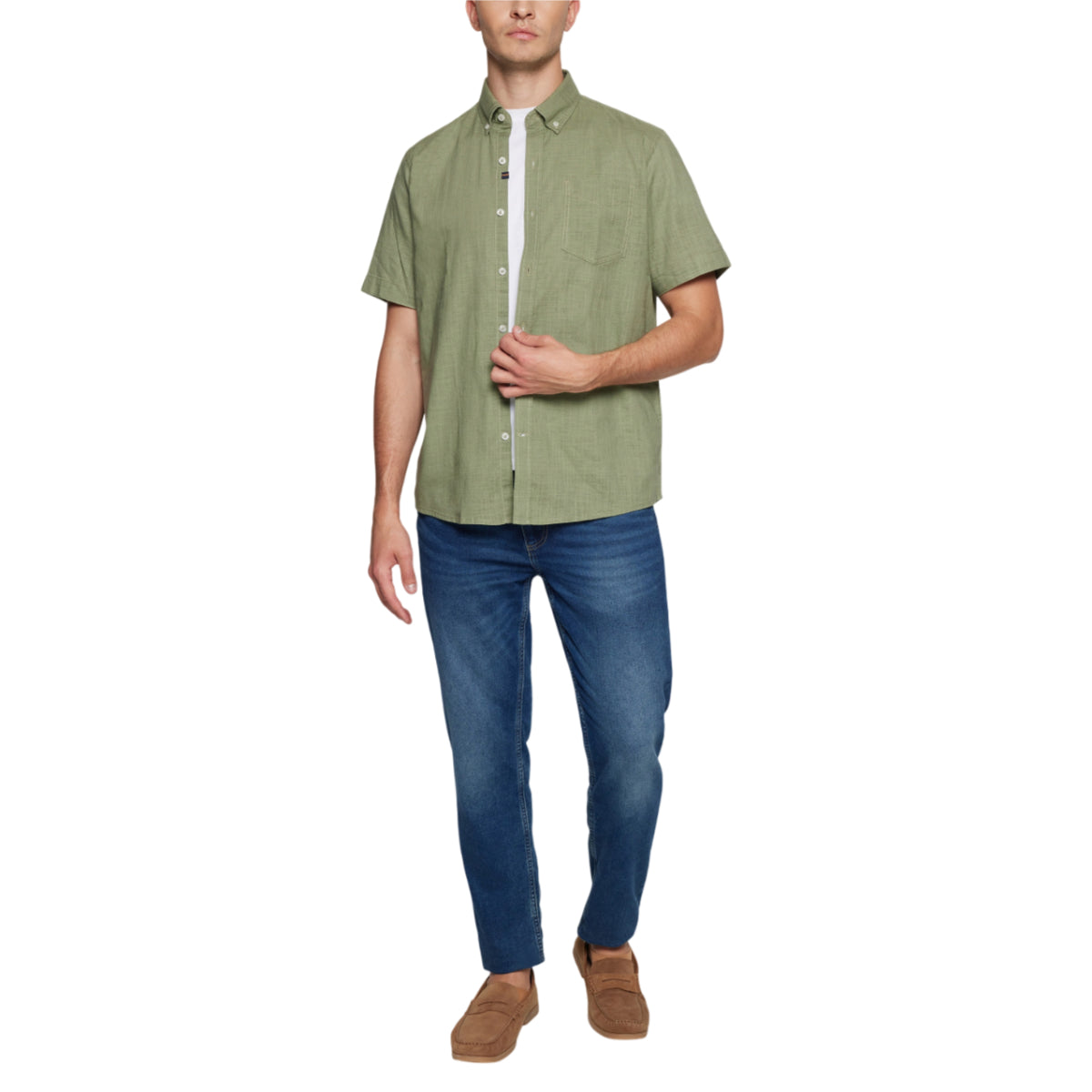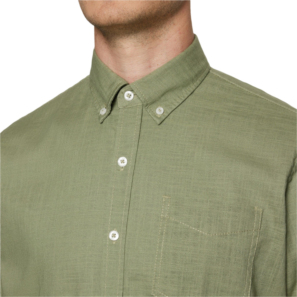 Den tidløse button down krave giver et pænt og velordnet udtryk, mens brystlommen tilfører et klassisk og praktisk detalje. Regular fit sikrer en komfortabel pasform med god bevægelsesfrihed.