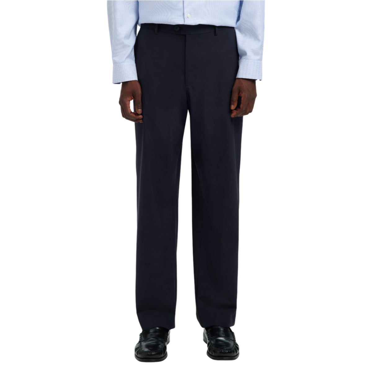 Den løse pasform giver et afslappet, men sofistikeret udtryk – perfekt til formelle anledninger eller et stilrent business-look. En polyesterforing fra talje til knæ sikrer, at bukserne falder pænt og er behagelige at have på hele dagen.