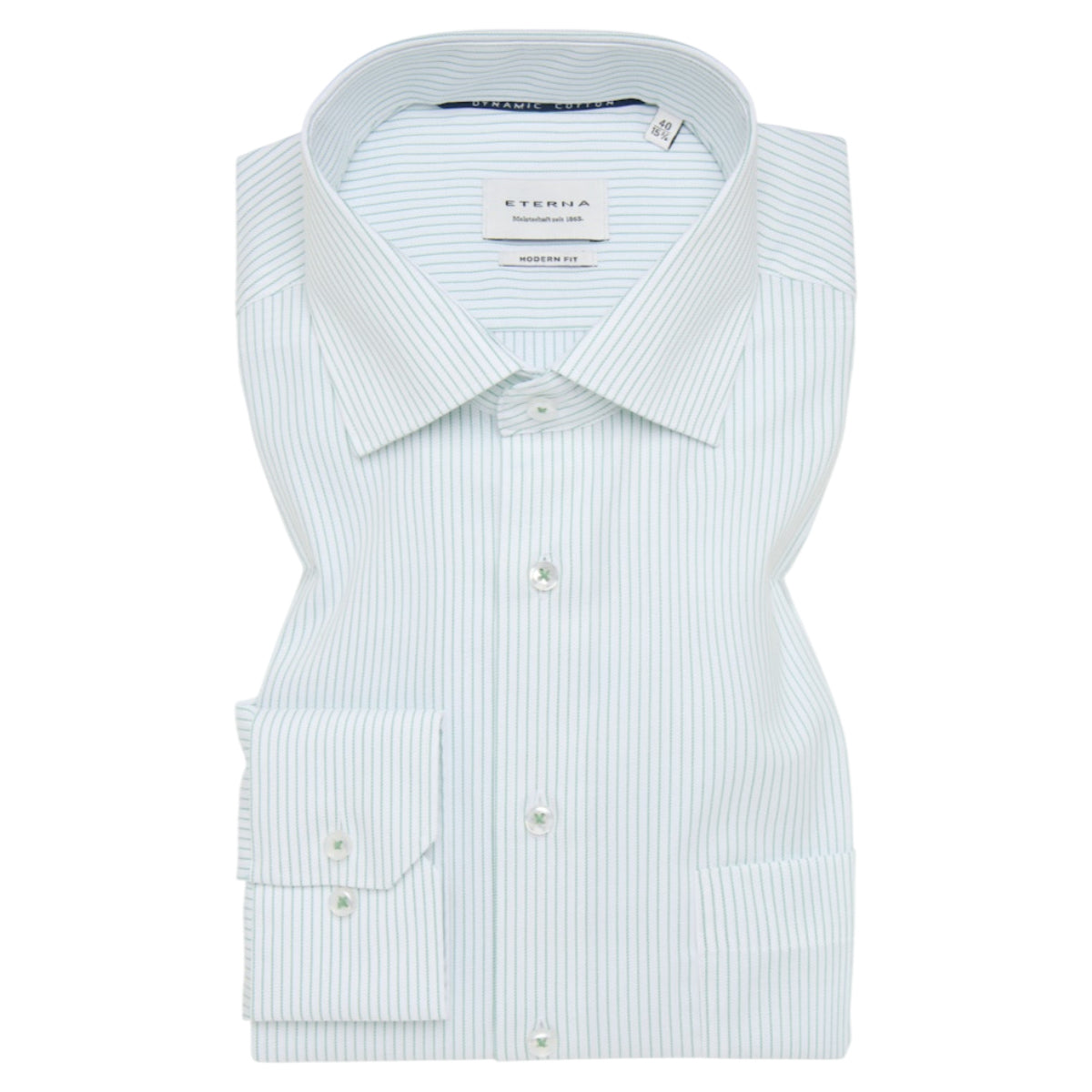 Modern Fit skjorte fra Eterna — en klassisk, stribet herreskjorte i 100% bomuld, skabt til den velklædte mand. Denne Eterna skjorte kombinerer tidløst design med høj komfort og er ideel som en formel skjorte til arbejde, møder og særlige lejligheder.