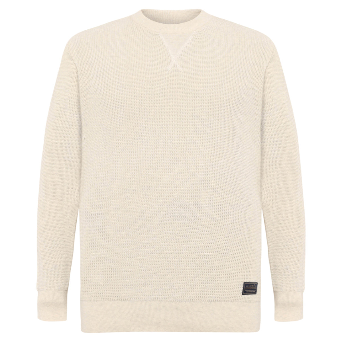 Fremstillet i 100% bomuld for en blød, åndbar og behagelig kvalitet. Den let grove struktur skaber dybde og et tidløst udtryk, mens rund halsen holder designet klassisk og alsidigt.