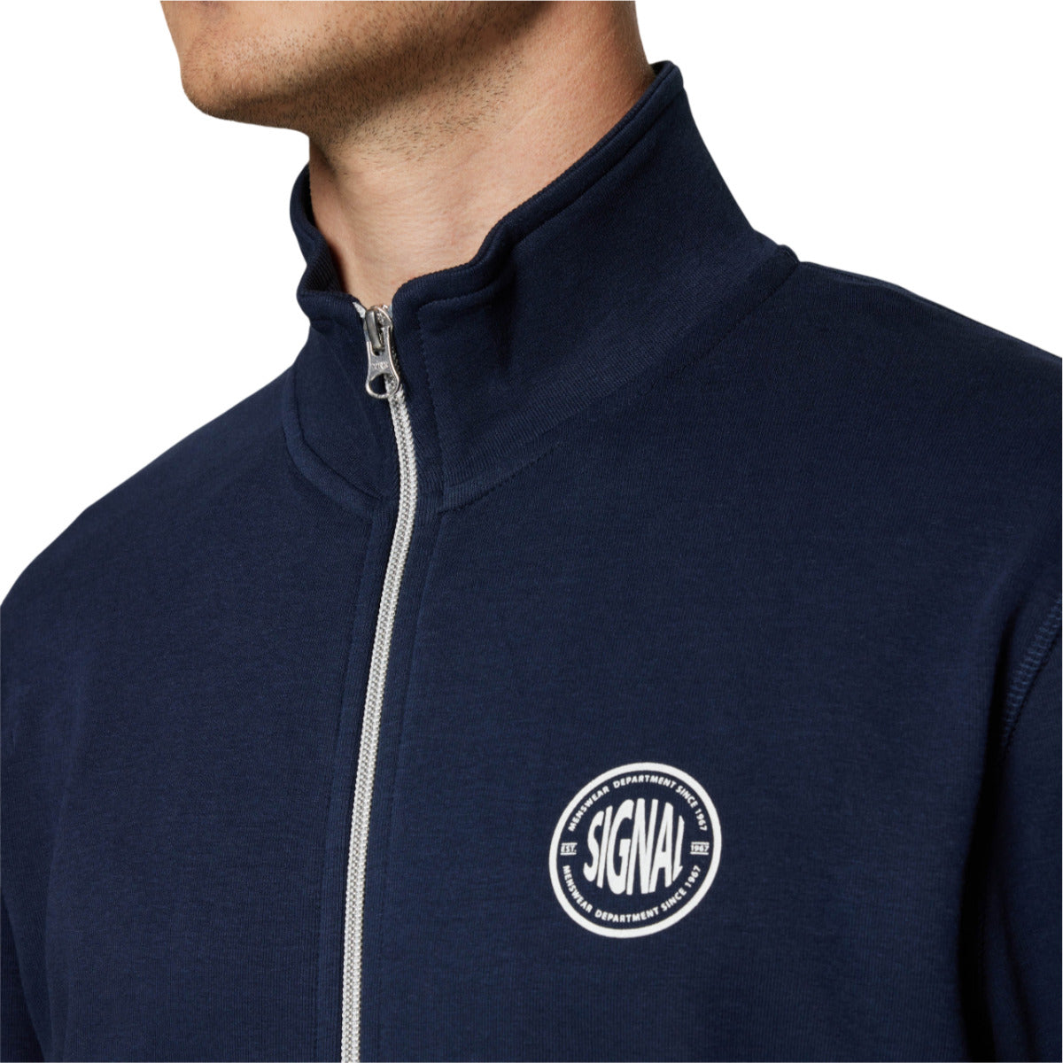 Fremstillet i 75% bomuld og 25% polyester for en blød, slidstærk kvalitet med god formstabilitet og behagelig følelse mod huden. Den gennemgående lynlås giver fleksibel brug og nem tempereringskontrol, mens det lille Signal-logo på brystet tilfører et diskret, eksklusivt præg.