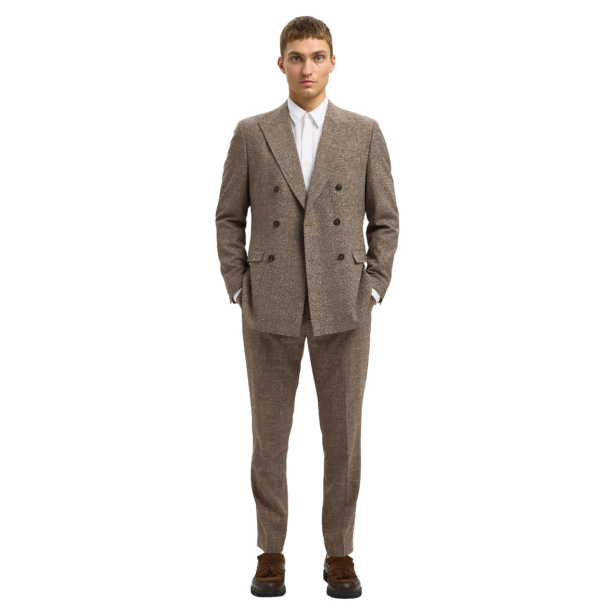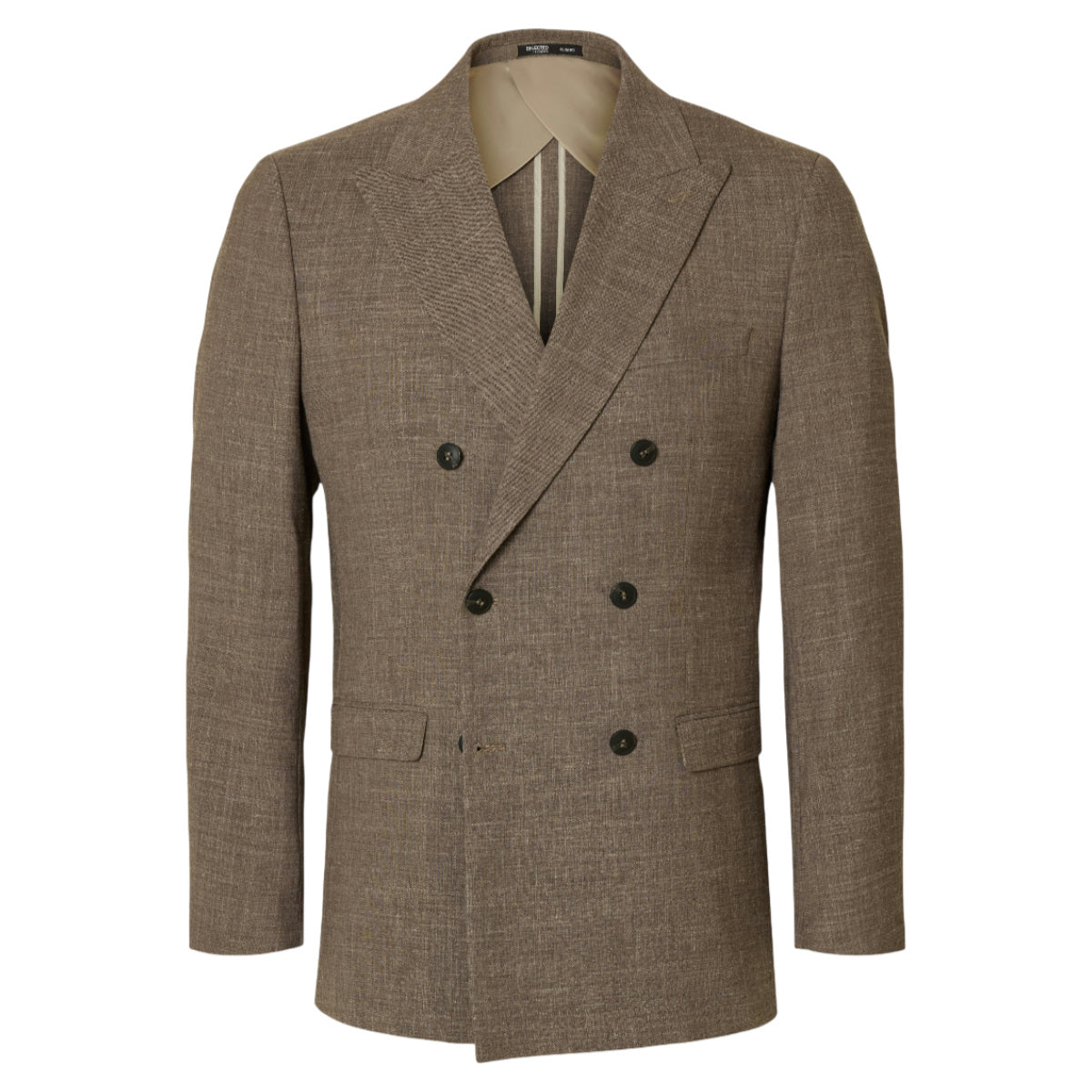 Dobbeltradet blazer fra Selected med et skarpt og moderne udtryk. Denne slim fit blazer kombinerer klassisk elegance og et nutidigt snit, hvilket gør den ideel som både formelt jakkesæt og som en opgraderet hverdagsblazer. Det dobbeltradede design og markante notch lapels giver et stilrent, sofistikeret look, mens den smalle pasform fremhæver silhuetten.