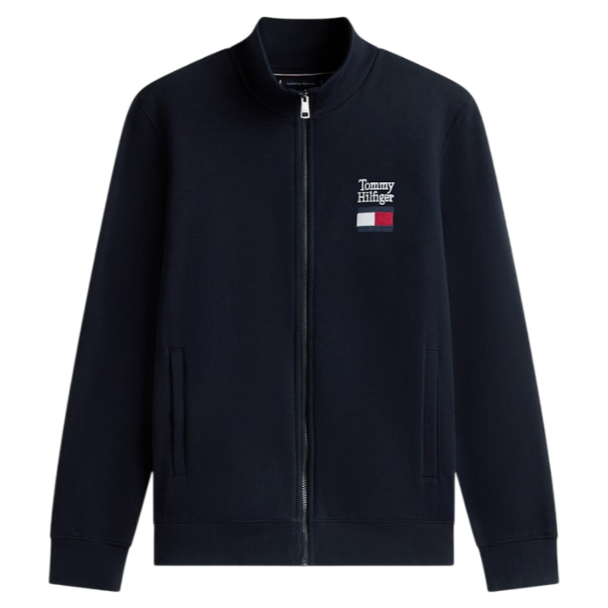 Tommy Hilfiger sweatshirt med ståkrave og broderet flag — Sporty komfort